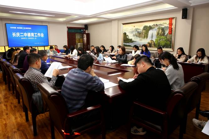 为围绕“立德树人”根本任务,认真学习贯彻石油普教中心2022年工作会议精神,切实落实《中小学德育工作指南》,结合学校本学期重点工作,全面加强德育工作管理,聚焦提质增优,不断提升德育管理水平,促进学校德育工作发展有新成效,育人质量有提升。2022年3月7日下午4:30,长庆二中在该校明德楼第二会议室召开了新学期德育工作会议。该校党总支书记、校长孙建国,教研室、团委、少先大队负责人和全体年级组长、班主任、德育处管理人员等共计40余人参加了会议,会议由该校主管德育工作副校长王和平主持。