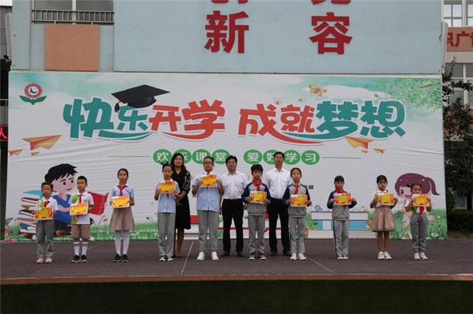 在庄严雄壮的国歌声中,五星红旗冉冉升起,迎来了新学年崭新的第一天。学校校长许正宁代表学校发表了热情诚挚的开学致辞,首先,对新入学的一年级新生表示热烈的欢迎,向辛勤工作在教学一线的全体教师致以诚挚的问候。接着,对学校上一学年的工作进行了简要的总结,对新学年的学校工作提出了新的奋斗目标:努力打造特色校园,提高教学质量,发展同学们各种特长,提升同学们的综合素质。同时,给学生提出了新的生活学习要求:自我调整,集中精力学习;穿戴整洁,争当文明小少年;牢记安全,增强安全意识;积极读书,拓宽知识视野;养成遵守秩序的好习惯;快乐生活,不断提高生活自理能力,健康快乐、阳光自信地成长。最后,学校副校长杨军英宣读了2019—2020学年学校“优秀班干部”“三好学生”的表彰决定,148名优秀学生受到了表彰。