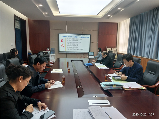 本次调研座谈会主要包括三项内容:一是许正宁做落实中心会议精神工作汇报;二是周秀玲老师做《小班教学环境下小学语文课堂对学生德育教育的渗透》课题结题报告;三是中心领导对学校教学工作及课题的意见和建议。