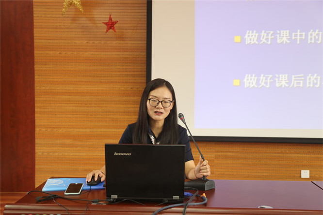 德育处负责人尚敬老师就如何做好新时期的班主任工作对新老师尤其是新入职班主任进行了培训。尚老师讲到,社会在变,教育在改,新形势下的班主任工作不仅仅是一份责任,更是一门艺术。将爱洒满每个角落,用耐心开启孩子心门的钥匙,在丰富多彩的活动中倾听百花齐放的声音。