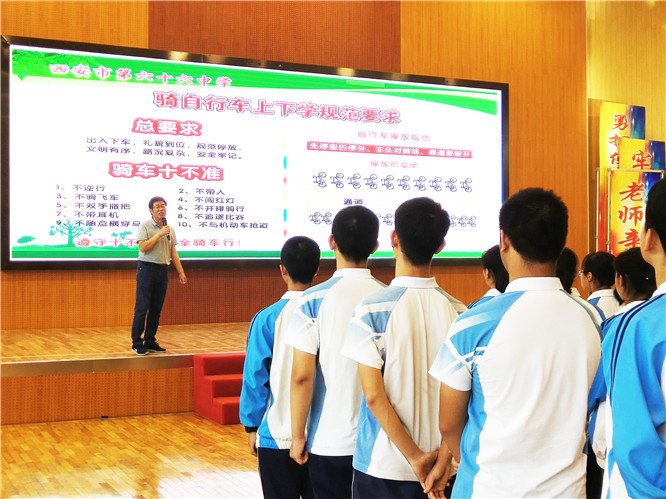 此次活动是新生入学教育的一部分,目的在于加强新生的上下学安全意识,,提升骑行交通安全意识,防范交通安全风险,为共建文明城市,助力全运盛会,共享发展成果做出当代中学生应有的贡献!