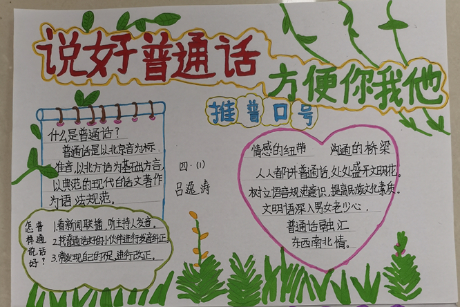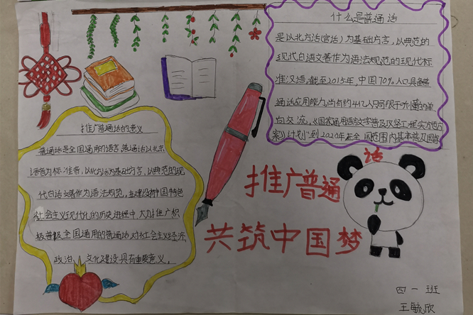 2020年9月14日至9月20日是第23届全国推普周,此次推普周活动的主题是:同讲普通话,携手进小康。礼泉分校推普周活动,通过国旗下的演讲、倡议书、教师动员大会、电子大屏、横幅等宣传力度;通过主题班会、墙报、手抄报、汉字书写活动、晨读诵读等,内容丰富,参与面广,营造了良好的校园语言文化氛围,弘扬民族文化,树立民族精神,为构建教学质量再上新台阶而努力。