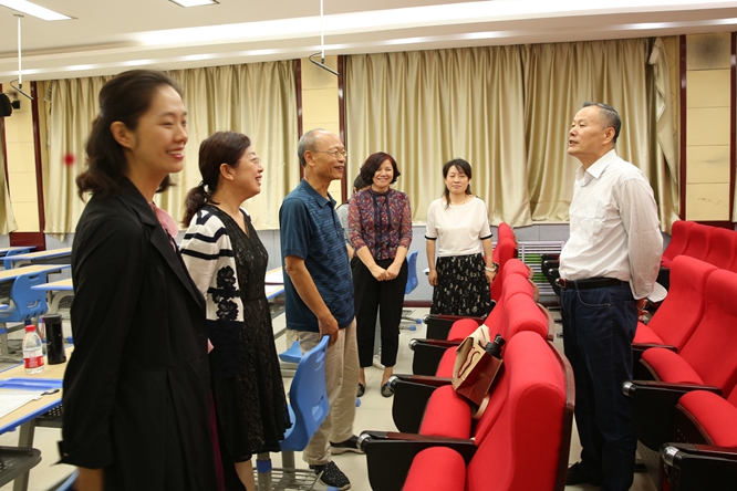 图为中心主任王智兴现场检查、指导,与评委交谈