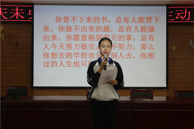 动员会在一首励志歌曲《少年》声中拉开序幕,本次活动由田源主持,她首先介绍了本次活动的背景和意义,并以铿锵有力的发言点燃了开场的氛围。