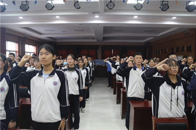 最后是学生宣誓环节,领誓学生代表以高亢的声音带领全体九年级学生郑重的宣誓:奋斗的青春更亮丽,拼搏的初三最珍贵!我们以青春的名义庄严宣誓,用心学习,严谨自律;远离手机,摆脱庸俗;遵规守纪,争分夺秒;全力以赴,追逐梦想;用信念支起人生理想,用汗水开启智慧光芒,用拼搏铸就明日辉煌!2021,我们必胜!我们必胜!