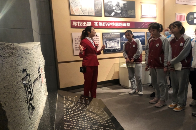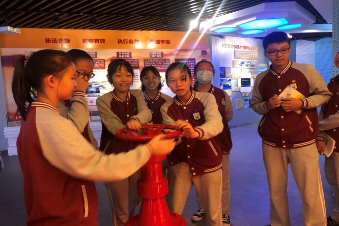 在讲解员生动细致的讲解下,团员代表们了解了长庆油田从艰难起步到稳定增产、从技术落后到创新进步的创业历程。鄂尔多斯盆地电子模拟图让团员代表们认识了华夏石油工业起步的地方;塔架下回荡着的石油工人自编自创的《压裂歌》,“压、压、压,狠狠地压,压的石油滚滚流” 让团员代表们仿佛回到了石油人艰苦奋斗的年代;《跑步上陇东》的人物蜡像再现了石油大军拉着架子车、挑着行李单,浩浩荡荡奔赴陇东油田的场景;砖块上水滴蒸发的实验形象地反映了低渗透油藏开发的难度;动态沙盘立体地展示了“鄂尔多斯盆地”地形地貌、主要油气田以及输油气管线等分布情况;采油设备模型、机器人、无人机、3D投影让团员代表们深刻地感受到了石油科技的不断创新与进步;油气开发模拟设备让团员代表们体验了一把石油工人的辛劳与自豪。
