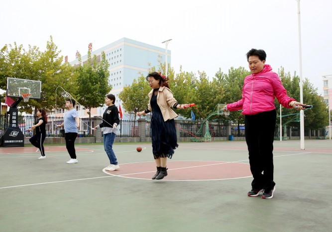 9月28日上午10点半,两项活动在该校篮球场拉开序幕。瞧,平日文质彬彬、不苟言笑的老师,他们却在赛场上一展身手。你1分钟跳绳120个,我1分钟跳170个,你投篮进球4个,我进5个。赛场上,对手之间,各不相让,你刷新了记录,我改写了新的历史,选手们精彩的表现,赢得了场外观众的阵阵喝彩。