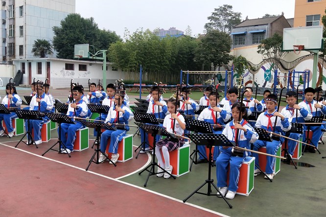 图为“体、艺2+1”展示项目——二胡齐奏