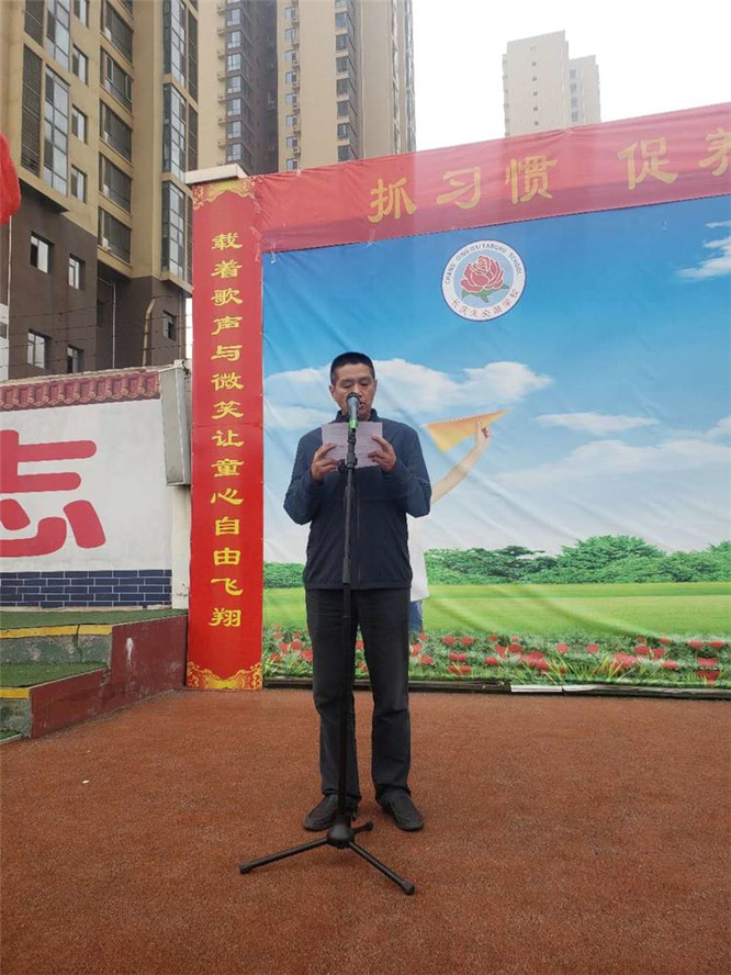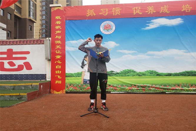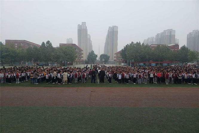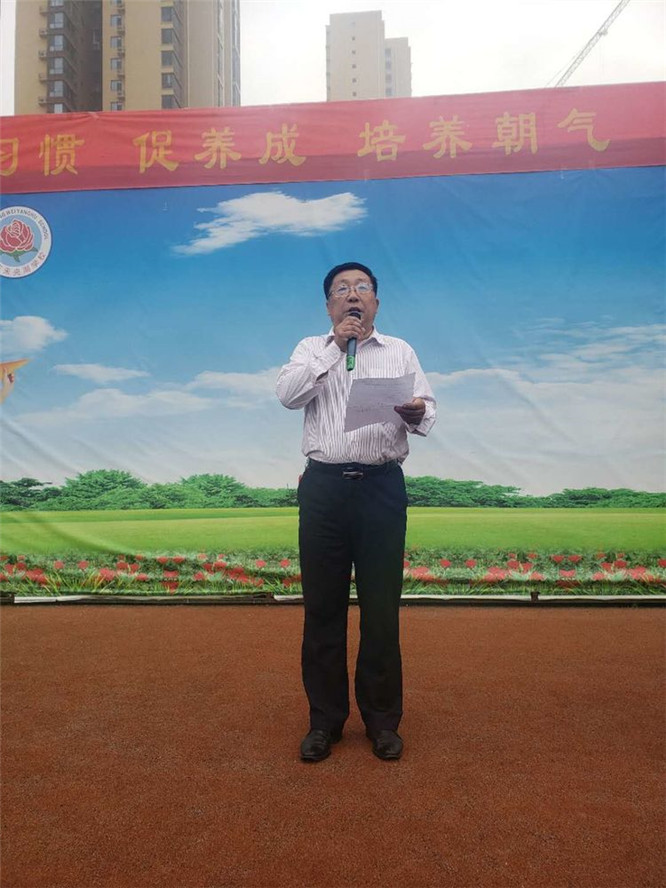 早上八点,学生们排着整齐的队伍来到操场,五星红旗冉冉升起。校长张吉高发表热情洋溢的讲话,向参与运动会的全体人员致以诚挚的问候。希望全体运动员以饱满的激情,昂扬的斗志,投入比赛中,赛出风格,赛出成绩;全体裁判员尽职尽责,严守规程,公正裁判;全体师生服从大会安排,文明参赛观赛,确保大会顺利进行。
