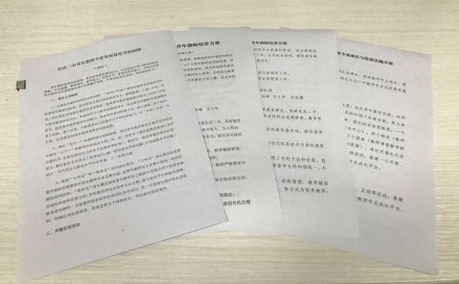 经充分筹谋,该校提出了发挥名师引领优势、实施任务驱动策略、开展丰富多彩活动、打造青年教师团队、形成青年教师品牌、探索创新培养模式等工作思路。新学年伊始,学校及时启动了青年教师成长成才工程,作为学校重点工程之一。由教研室牵头,制定了《长庆二中青年教师三年发展规划》、《长庆二中青蓝工程计划》、《长庆二中名师及结对青年教师管理考核办法》、《长庆二中青年教师自主发展管理小组工作计划》等相关文件,结合学校实际情况,出台了详实的青年教师成长成才工程实施方案。