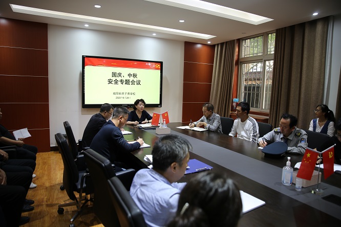 2020年中秋、国庆节来临之际,为认真贯彻落实石油普教中心及渭城区有关文件精神,进一步做好中秋、国庆节期间学校安全防范工作,认真落实学校各项安全措施,有效预防安全事故发生,确保学校财产和人员安全,咸阳长庆子弟学校召开“国庆”“中秋”专题安全工作会议,并进行校园安全大检查。