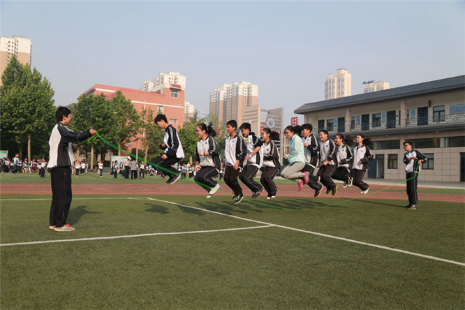 三是打造特色体育项目,让校园“亮起来”。花样跳绳让花样趣味铺洒校园,学校把西安非遗项目花样跳绳作为特色体育项目大力推广,将其列入体育课、大课间和社团活动内容,且每年定期举办跳绳运动会,进行一次集中的展示和检阅,既丰富了校园文化生活,又营造良好的校园健身氛围。