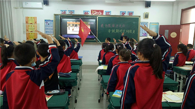 班会课上,在各辅导员带领下,队员们注视着电子屏幕上鲜艳的五星红旗,嘹亮地唱响了少先队队歌。孩子们宣誓、向国旗敬礼。各中队辅导员组织出旗仪式,带领全体少先队员重温入队誓词;“准备着,为共产主义事业而奋斗!”、“时刻准备着!”鼓励全体少先队员要努力学习,不怕辛苦,不辜负老师和家长的期望!随后,各中队辅导员组织同学们观看了有关少队组建、发展、壮大的专题片。各中队以不同的形式开展各项活动,孩子们在有声有色的建队日活动中接受教育、增长知识、体验生活、学会感恩、振奋精神,激励少先队员从小听党的话,做共产主义事业的接班人!