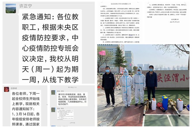 阳春三月,新冠肺炎疫情卷土重来,长庆泾渭小学的教学工作被迫中断。面对疫情突袭,陕西省教育厅、陕西石油普教中心、未央区教育局作出周密部署,积极进行疫情防控。根据未央区疫情防控要求,长庆泾渭小学于3月14日停止线下教学活动,转为线上教学,为期一周时间。