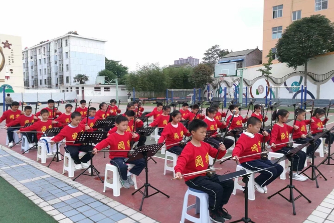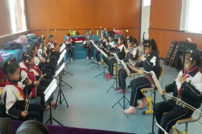近年来,随着素质教育的深入发展,二胡等中华传统乐器也得到了越来越多学生和家长的喜爱。礼泉分校二胡社团也逐渐趋于规范化、常态化、专业化。学校的课程安排中,专门开辟了每周一、周二累计不少于3个小时的活动时间为学生训练二胡;学校专门列支资金,为二胡社团购置乐谱架等音乐器材;教师的业务进修中,也定期安排二胡社团指导教师前往西安、重庆等地参加“国培计划”等项目学习深造;每年六一文艺汇演、校园运动会开幕式等大型活动中,都必定有二胡社团学生集中展演。通过多项措施,全方位、多角度支持二胡社团发展。