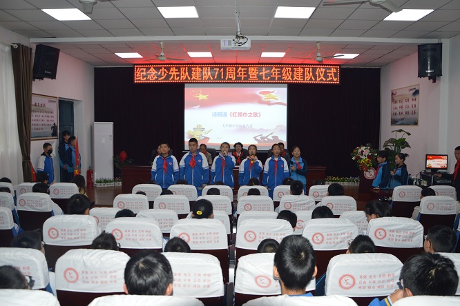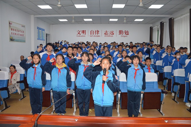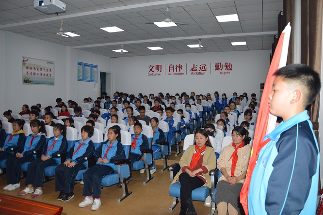 为教育引导全体少先队员不忘初心,听党话,跟党走。大队长陈音儒带领全体少先队员重温入队誓词,大队辅导员郭小翠带领全体少先队员进行呼号。简短的仪式激发了少先队员的热情与激情,坚定了少先队员的决心与信念。