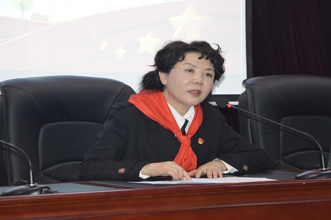 首先,张焱红代表校党总支致辞。她首先对大会的胜利召开表示祝贺,对咸阳长庆子弟学校少先队事业发展默默奉献的辅导员老师、提供帮助支持的家长致以衷心的感谢。她带领全体少先队员回顾了中国少年先锋队与共和国一同走过的七十一年光辉岁月,明确了少先队员的职责和使命。她希望全体少先队员树立远大理想,打好扎实的文化功底,练就强健体魄和顽强意志,加强道德修养,争做“五小”好公民;养成好习惯,争做学习小标兵,力做求知小模范,人人争当美丽学生;努力成长为对祖国、对人民、对社会的有用之才,时刻准备着为实现中华民族的伟大复兴贡献力量!