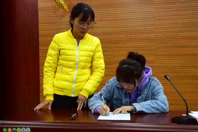 青年教师代表孙毓珊发言,承诺以后在工作中勤奋学习,认真向导师们请教,熟悉课堂教学,提高自己的教育教学水平,尽快站住讲台。李晨元代表导师们作出承诺,尽心尽力地传授经验,做好指导工作。