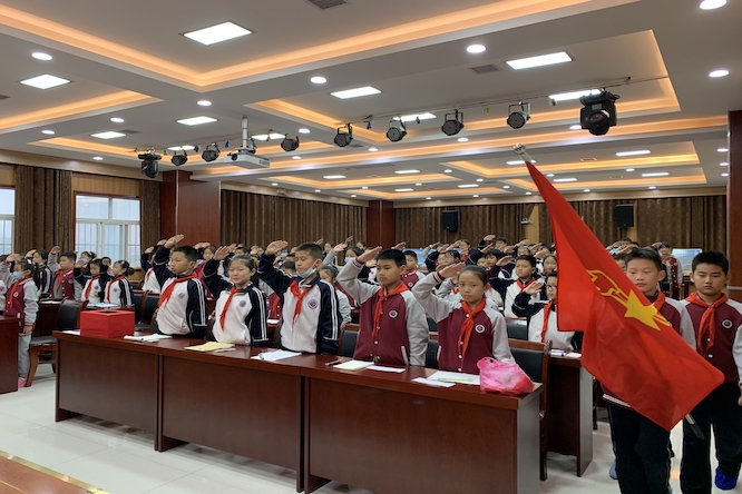 最后全体少先队员在中队辅导员李晨元的带领下进行呼号,让本次会议伴随着少先队员响亮的“时刻准备着”回答声中圆满结束。