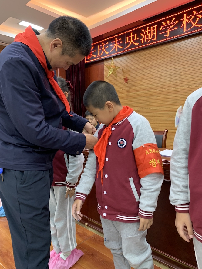 随后,张校长公布长庆未央湖学校少先队工作委员会名单,并为李晨元老师颁发聘书,主持人宣布长庆未央湖学校新一届大队委员会成员名单,学校领导和辅导员代表为少先队干部佩戴了标志。