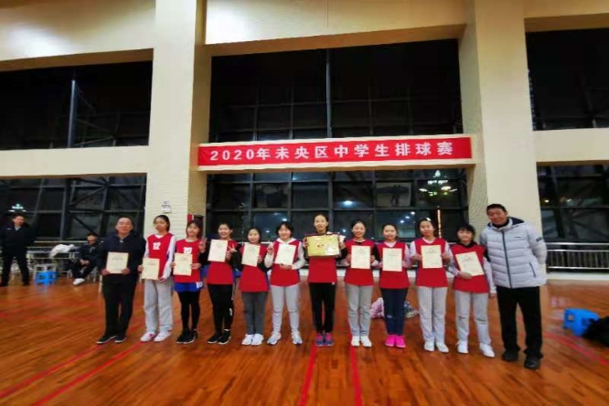 2020年未央区中学生排球比赛于11月22日在西安中学体育馆举行。长庆八中女子排球队在主教练杨杰老师的带领下参加了本次比赛。本届比赛初中女队共有五支代表队参赛。比赛当天天气寒冷,天空飘着雪花,体育馆内也没有暖气。全体队员不畏严寒,积极参赛,认真对待每场比赛,精心组织,顽强拼搏,最后以三胜一负的战绩荣获初中女子组第三名。特别在对阵老牌冠军队泾河中心学校的比赛中在先失一局的不利情况下,全体队员放下怕输的包袱,敢打敢拼、不放弃每一次扑救,团结一心连扳两局以2:1战胜泾河中心学校女队,最后在胜场一样的情况下算小分遗憾第三。