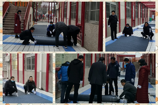 师生安全永远是学校的第一要务,改善安全环境,拿出真招实招,为确保全校师生安全过冬,礼泉分校动用专项资金采购了新的防滑地毯。按照中心《关于加强冬季校园安全工作的通知》的文件精神,学校党支部于24日下午第三节课后开展了主题党日活动,组织全体党员对学校文化长廊的树藤、落叶、积水等进行清理并铺设全新的防滑地毯,保证校园师生安全。