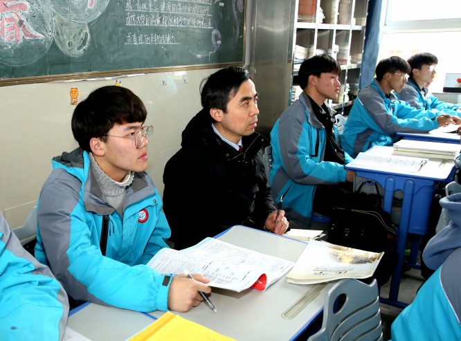 图为专家深入课堂听课