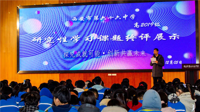为通过活动激发学生的研究热情,培养学生的创新精神与创新能力,深入推进新课程的开发与建设。12月5日上午,西安市第六十六中学在学生活动中心举行了高二年级研究性学习终评课题展示点评活动。年级全体教师和学生参加,评委由学科备课组长担任,并负责现场点评。