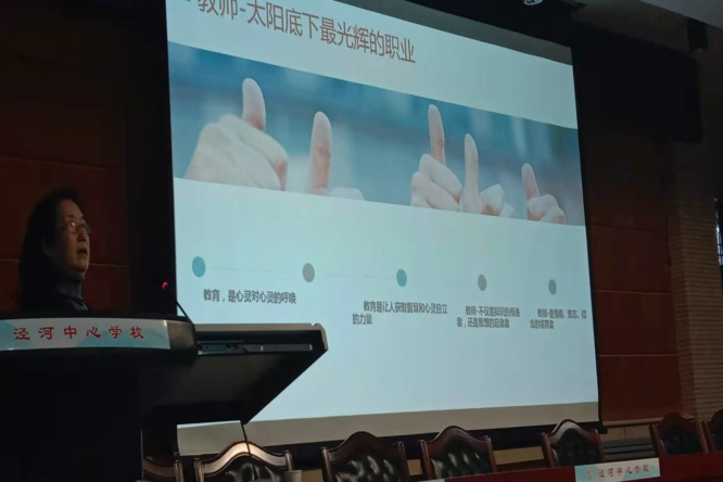 9日下午,学校聘请国家二级心理咨询师张晖老师为全体教职员工上了一堂题为《教师,太阳底下最光辉的职业---走出职业倦怠,做一名幸福快乐老师》的心理课程。她从个人成长经历入题,肯定了教师的职业地位---太阳底下最光辉的职业,再论述教师职业倦怠产生的原因及克服倦怠的方式方法,最后又介绍了心理学的一般理论,指导教师怎样对待自己的心理问题,如何自我放松、自我解压等知识,给予了老师们应有的帮助。