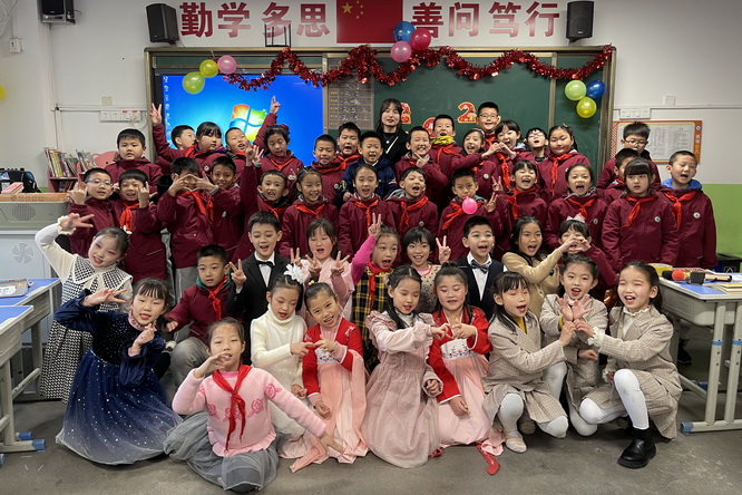 下午4点整,以“喜迎元旦佳节同心筑梦未来”为主题的联欢活动在各班拉开序幕,班级联欢会由学生自行组织编排开展,锻炼了学生的创新精神、合作精神和实践能力。活动中,学生们热情高涨,积极参与,充分发挥特长,表演拿手节目,还邀请老师们倾情合演。动听的歌曲、幽默的相声、铿锵的朗诵、欢快的小品……丰富多彩的节目在各班级同步上演。