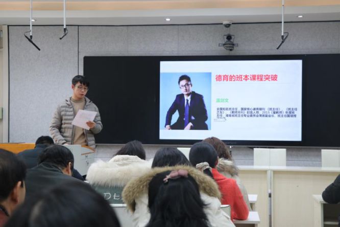 首先由两位参加“全国中小学班主任专业素养提升深度研修班”的老师吴杰、罗鑫进行了培训心得分享,两位老师将自己几天的学习归纳整理,精心制作PPT,把班级管理经验以及班级突出问题的应对措施与各位班主任老师交流探讨,为以后的班级管理提供了新思路。