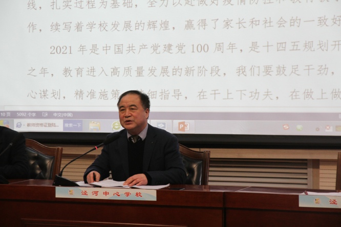 最后,副校长冯立海作了总结发言。他强调,中心工作报告明确了2021年工作的总体思路,安排了八个方面的重点工作,提出了具体的工作目标和要求。我们要通过宣传橱窗展示、年级组学科组主题研讨、党员主题教育活动、教职工大会等多种形式,深入细致的学习报告内容,全面领会中心和学校全年重点工作内容、目标任务和要求,在各项工作计划中安排部署、认真贯彻落实。