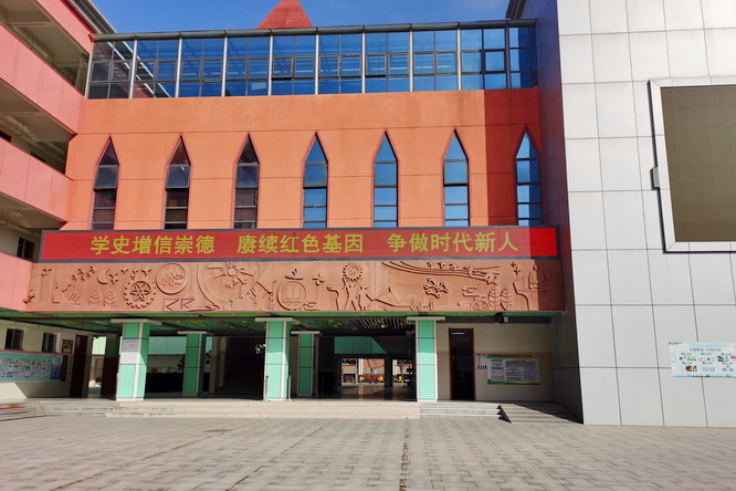 学校前院大屏上“新学期 新起点 新时代 新使命 新一代 新征程”和“学史增信崇德 赓续红色基因 争做时代新人”的标语清晰鲜明。清晨师生们一踏进校园,映入师生眼帘的宣传标语,就营造了红色教育的氛围,引导广大师生重视党史、新中国史、改革开放史和社会主义发展史,强化了他们对党和国家的情感认同。