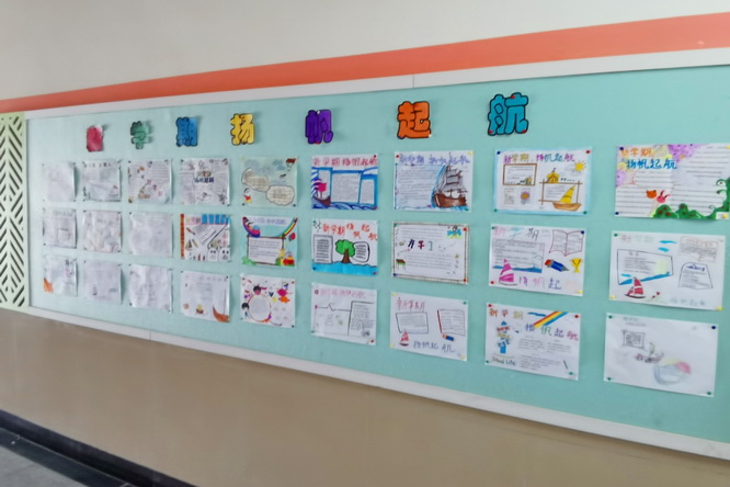 各班班级文化学习园地及时更新,“新学期 新征程”、“新学期 扬帆起航”等焕然一新的主题墙报激励学生们新学期大有作为!