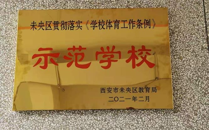 图为未央区贯彻落实《学校体育工作条例》示范学校奖牌