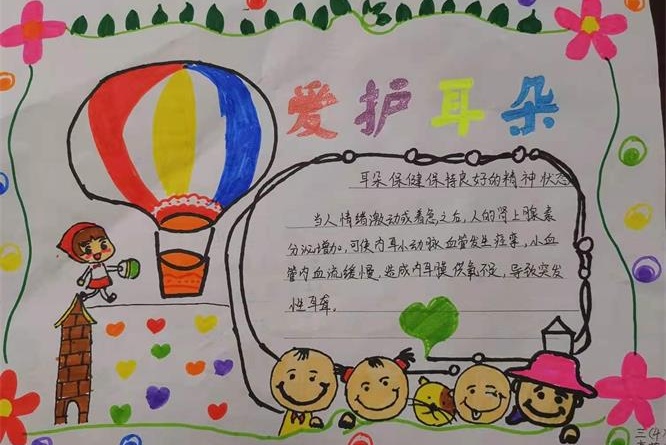 同学们通过制作手抄报,宣传“爱耳日”的相关知识。