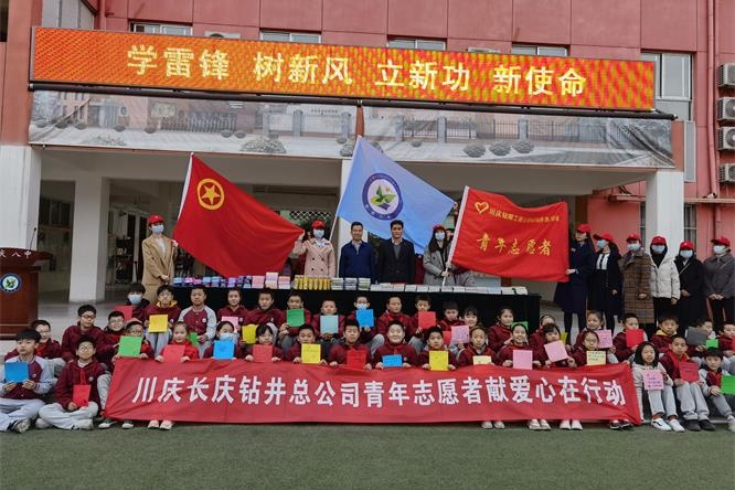 3月2日下午,学校与川庆长庆钻井总公司团青志愿者们共同开展了“学雷锋 树新风 学铁人 立新功”活动,通过讲述雷锋故事、石油故事,向学校师生捐赠图书和学习用品等环节,鼓励学生从身边小事做起,行动起来,将爱心传递,争做“雷锋好少年”。