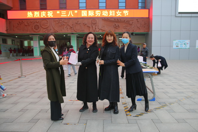 清晨的校门口,当老师们迈着轻快的步伐进入校园,迎面是领导们亲自送来的节日玫瑰花,是工会委员们递上的祝福纪念品,一句“女神节快乐”,一个祝福的拥抱,一双握紧的手,一个开心的微笑,让校园顿时充满节日的气氛。老师们都说“太暖心了!”“好惊喜啊!”“好有仪式感啊!”是啊,小小的惊喜会让老师们内心暖暖的,我们是个有爱的大集体!