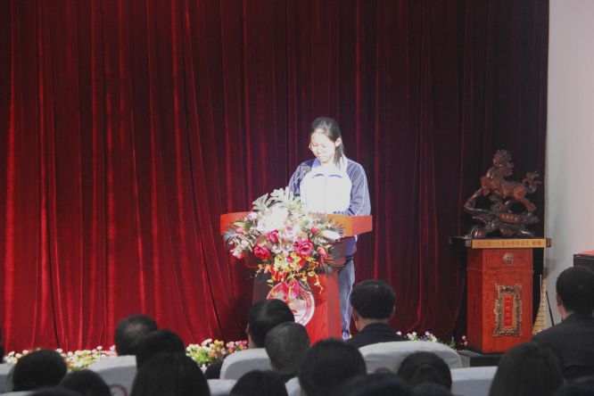 伴随着激昂壮阔的音乐声,大会正式拉开帷幕。首先由陈宵老师代表全体教师郑重承诺,每位老师都会以生命做笔,用热血为墨,陪伴孩子们一同走过生命中最亮丽的时节,帮助学生抒写辉煌人生的第一个华美篇章。