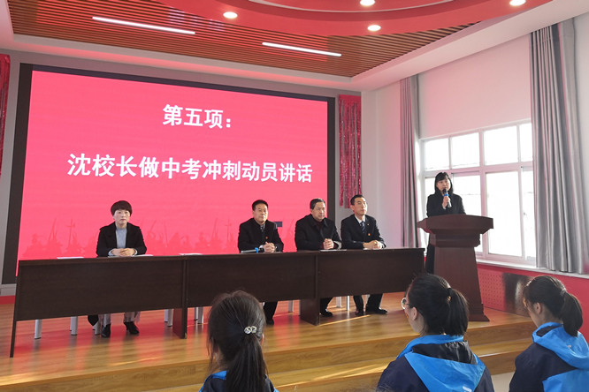 图为党支部书记赵永宁主持中考百日冲刺誓师大会