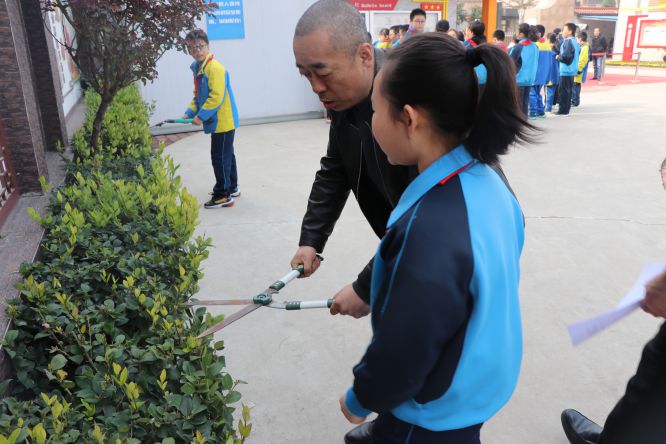 总务处带领学生修剪绿化带