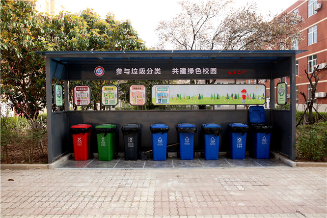 图为校园垃圾分类投放点