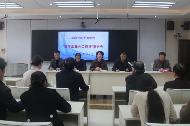 为扎实推进咸阳长庆子弟学校教学质量关口前移工作,在全体教师中树立“以学生为主体,以教师为主导,以教学为中心,以质量为生命”的教学理念。2021年3月17日下午,咸阳长庆子弟学校召开“教学质量关口前移”推进会。学校校长张焱红,副校长田宁苏、李怀斌、郭国良,教务主任隋弢及六至九年级全体任课教师参加会议。会议由李怀斌主持。