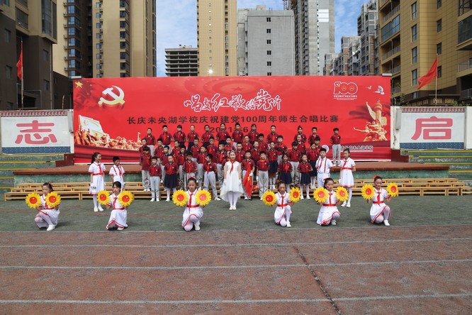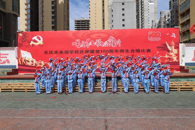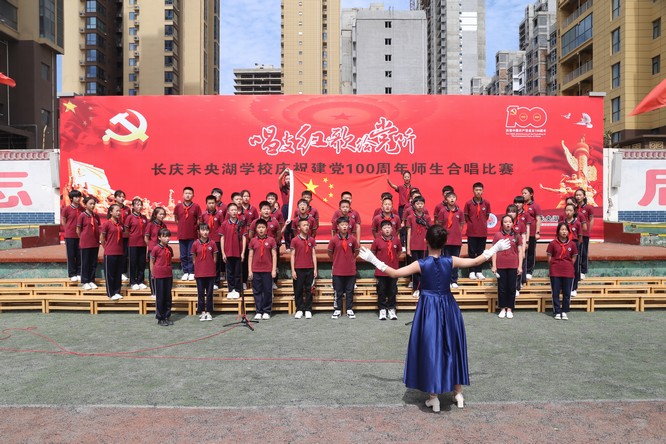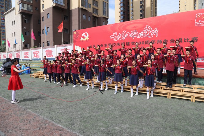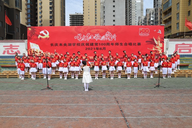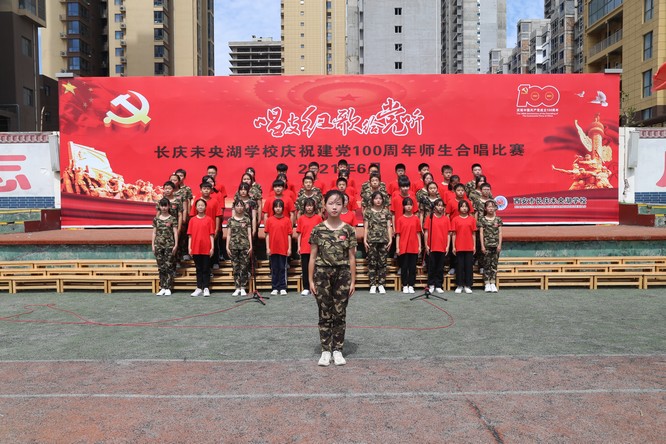歌曲是时代的心声,一曲红歌就是一段鲜活的历史,每一句歌词都蕴含着爱国主义的历史情感,每一段旋律都辉映着社会和谐进步的历史足音,在歌声里追忆红色历史,传承革命精神,长庆未央湖学校的莘莘学子们用最嘹亮的歌声、最优美的旋律,共同追忆了那段烽火岁月,为建党百年献礼。红歌是嘹亮的号角,红歌是不朽的精神,长庆未央湖学校人将以红歌精神为鼓舞,立足岗位,积极进取,努力做好教育教学工作,践行初心使命,为奔跑在校园里的这些“小花朵”沃洒成长之地。