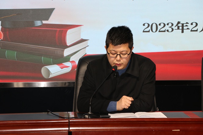 为贯彻落实中心2023年工作会精神,促进班主任队伍专业成长,提升班级管理水平,推动德育工作新发展,2月14日下午,咸阳长庆子弟学校在阶梯教室召开了主题为“同心聚力启新程,立德树人共奋进”新学期班主任培训会,会议由党总支书记田宁苏主持。