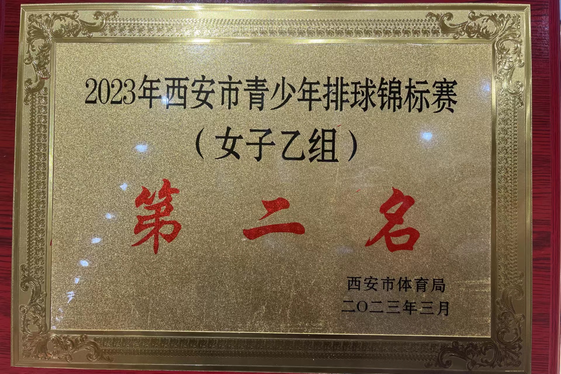 图为排球女子乙组亚军奖牌