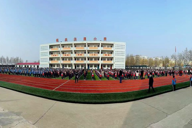 图为全体师生大课间集合场景