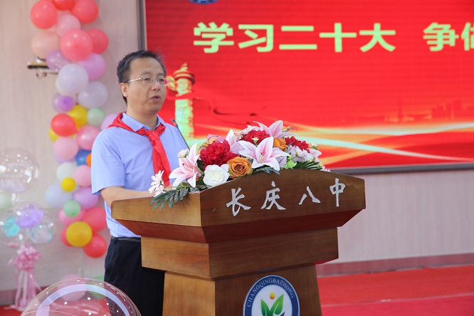 《礼赞二十大》之后,学校党总支负责人汪玉生作了热情洋溢的精彩致辞。他勉励孩子们,实现中国梦是一场接力赛,需要几代中国人的接续努力,作为新时代的小主人,要积极投身到“学习二十大、永远跟党走、奋进新征程”主题实践活动中去,展现自己、磨练自己,牢记“请党放心、强国有我”的铮铮誓言,时刻准备着用自己的“青春梦”托起民族的“中国梦”。
