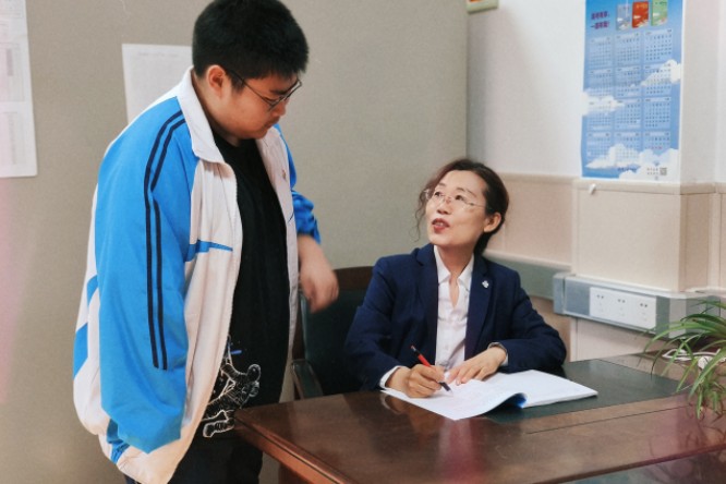 班主任要热爱本职工作,有强烈的事业心和责任感,用自我的人格魅力去影响学生。孔子说:“其身正,不令而行;其身不正,虽令而不从。”她要求学生不迟到,不早退,每天坚持比他们早到15分钟,在教室门口迎接他们。一次因小区停电,为了赶7点之前比学生早来,也没有来得及洗脸,摸黑从20层跑下来,坐着出租车一路奔向学校。不让他们带手机,我自己绝不带手机去课堂。这样,班级在不知不觉中逐渐地形成了有规矩、守纪律、积极向上的良好班风。在2020届时,不小心骨折,起初以为是脚崴了,因为不想影响上课存着侥幸心理没有去医院,晚上才到医院,发现骨折,必需请假,第一反应就是学生的课怎么办?休息了不到一个月,她拄着拐仗,返校上班。虽然生活极其不方便,但还是每天坚持6点半到校。在工作中,她有着强烈的事业心和责任感,在新生入学家长会,为了和家长很好地沟通,把家长会从下午4点一直开到晚上9点钟,错过了好友们的饭局,受到朋友的抱怨。经常是第一个来校,最后一个离开,只因对班主任工作的热爱与投入,潜心班主任工作,随时反思总结,不断提升教育工作水平。