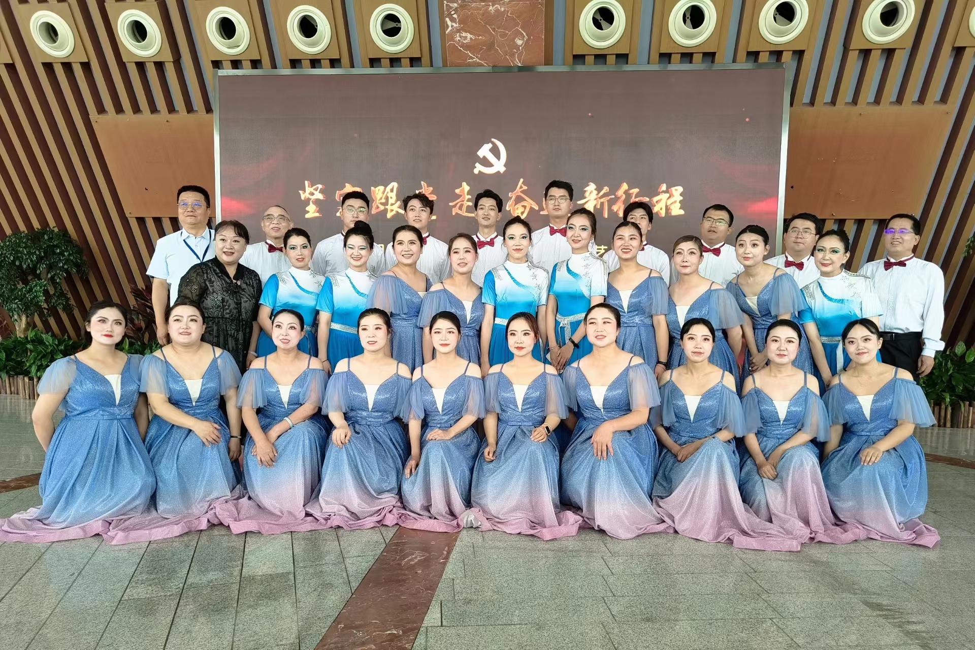 为庆祝中国共产党成立102周年,深入学习贯彻落实党的二十大精神,营造永远跟党走,奋进新征程的浓厚氛围。6月27日下午,由中共陕西省委直属机关工委主办的“坚定跟党走,奋进新征程”省直机关庆祝“七一”主题文艺演出在西安市广电大剧院举办。本次演出共有十六个单位、十二个节目参演,我校30多名教师参加陕西石油普教中心合唱团代表省委教育工委(省教育厅)参演压轴合唱节目《领航》获得圆满成功!